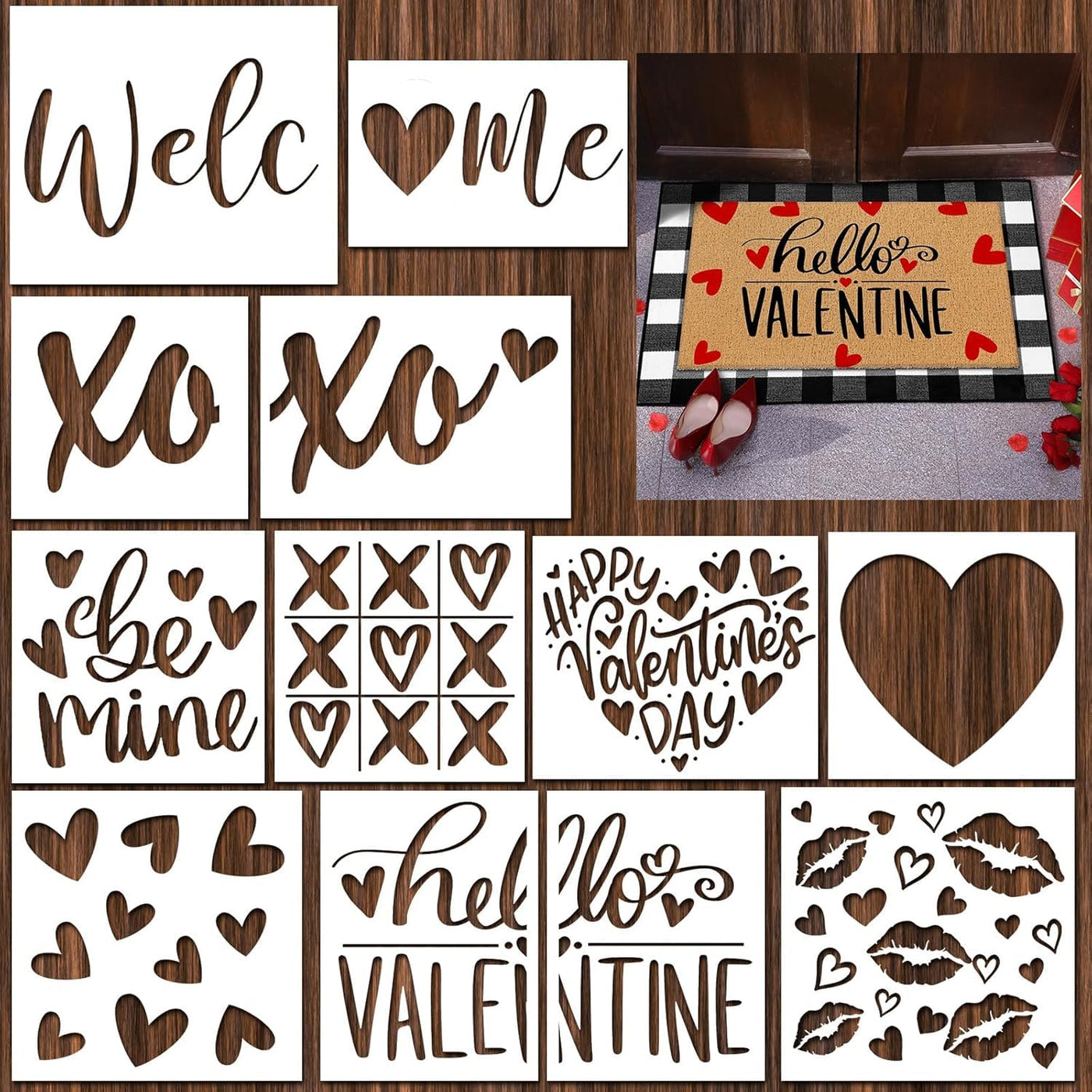 12 Pcs Large Valentine’s Day Stencils for Door Mats – Reusable Welcome Love & Heart Templates