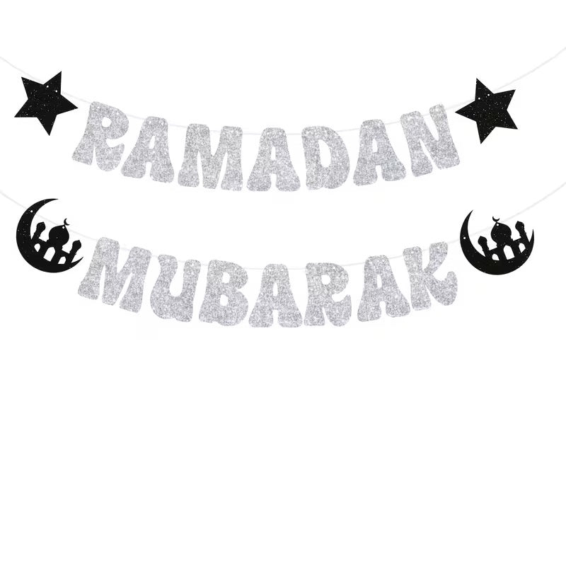 This Ramadan Mubarak Paper Banner Set is thoughtfully designed to bring a spiritual and elegant touch to your home and celebration space. Featuring a beautiful silver glitter finish, this hanging banner instantly enhances the festive ambience of Ramadan, Eid Al-Fitr, and Iftar gatherings.