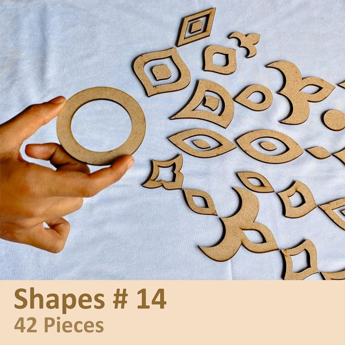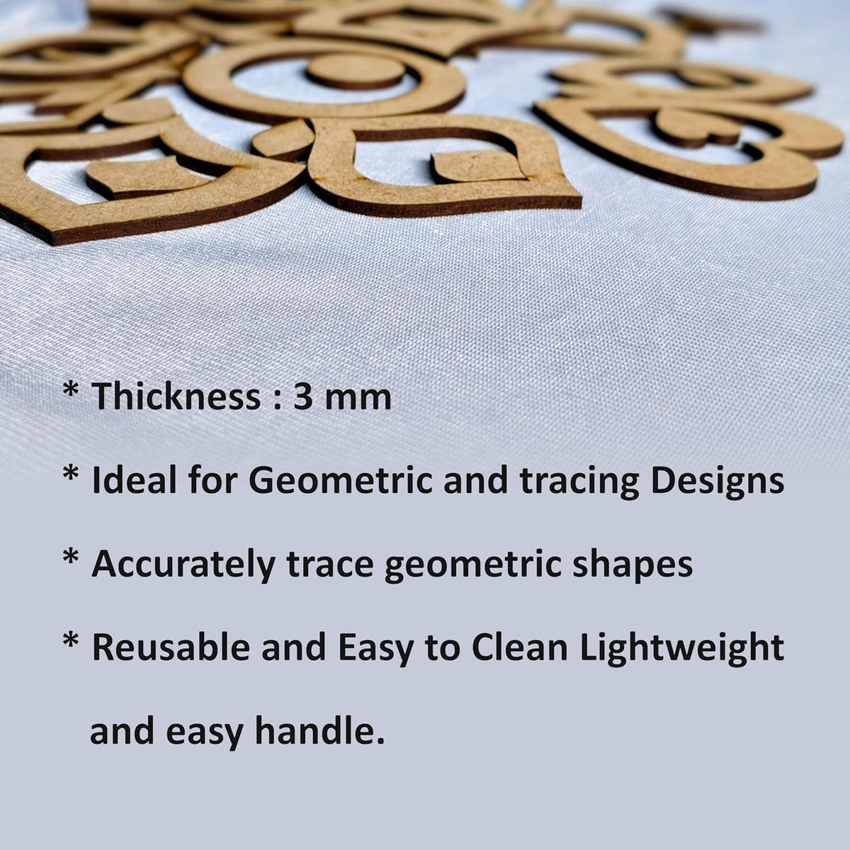 Premium 42 Pcs Mandala Stencil Set made of high-quality Pine MDF with a smooth 2.7 mm thickness, designed for artists, beginners and DIY lovers. This complete 14-in-1 creative kit includes mandala stencils, geometric pattern templates, Pine MDF shapes, and dot mandala tools, giving you endless possibilities for artwork, tracing, wall décor, notebooks, canvas painting and craft projects.