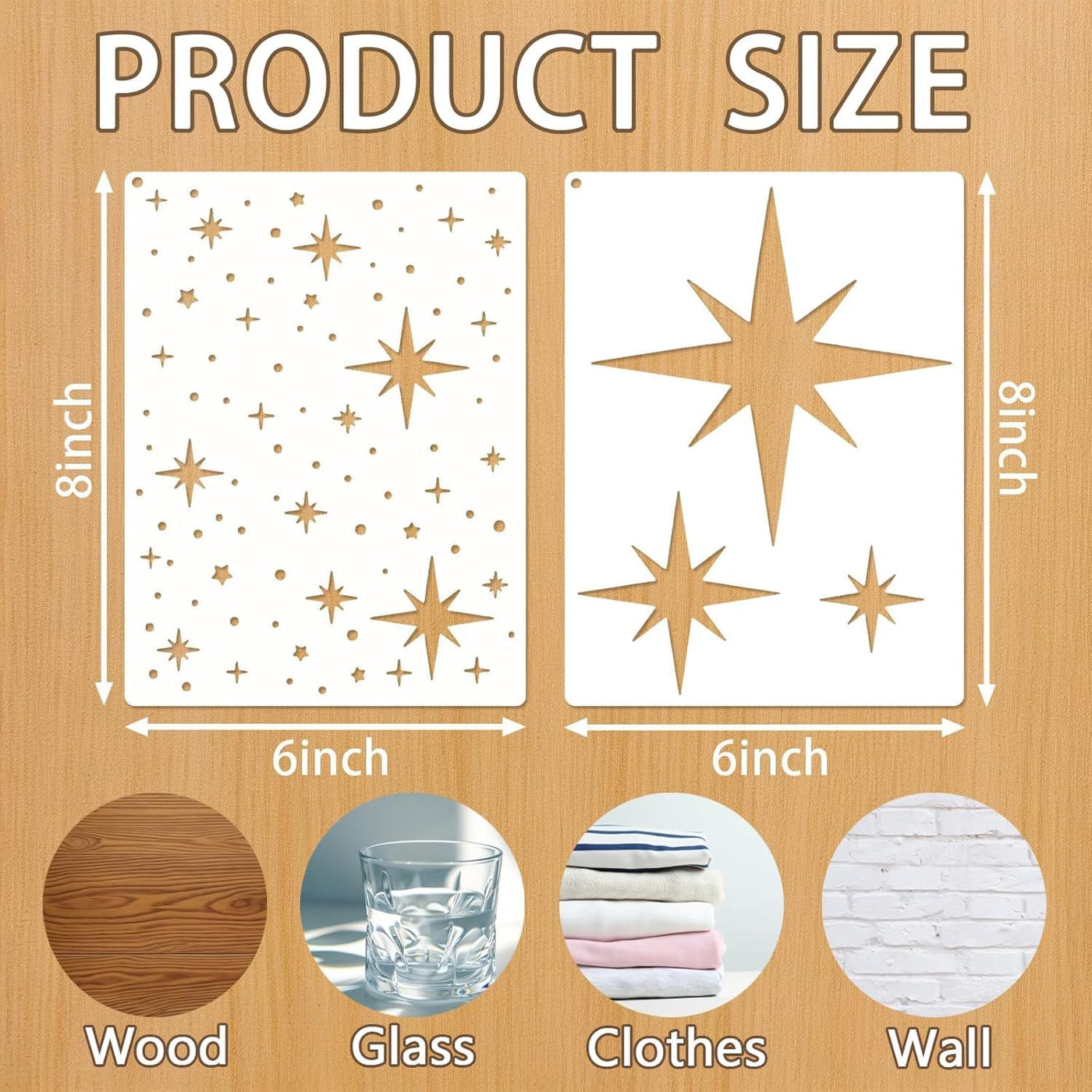 ⭐ Create beautiful star-themed artwork with this 6 Pcs DIY Reusable Star Pattern Painting Stencils Set, designed in a convenient 8×6 inch size for all kinds of creative and decorative projects. These templates feature multiple star shapes perfect for home décor, wall art, journal layouts and furniture painting.