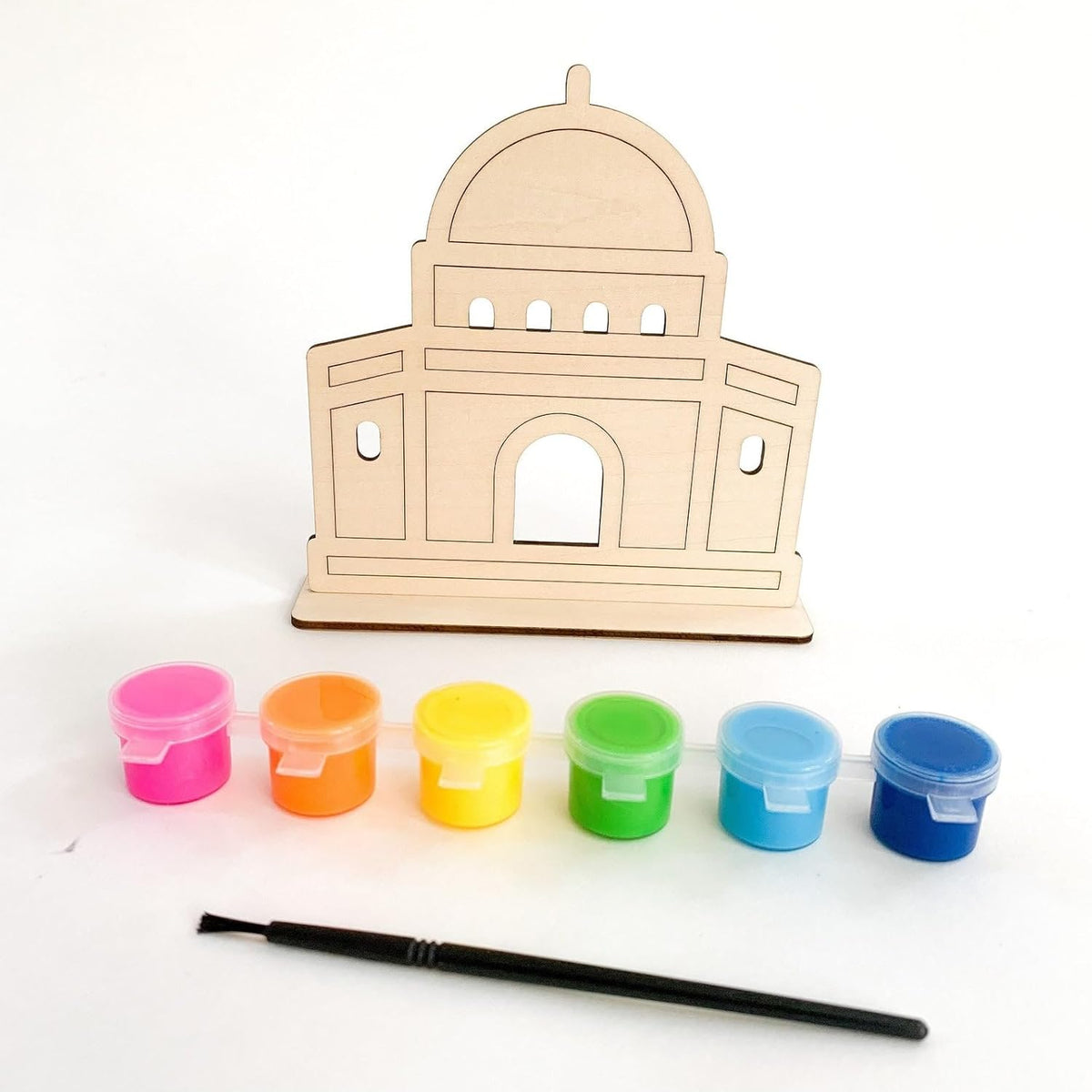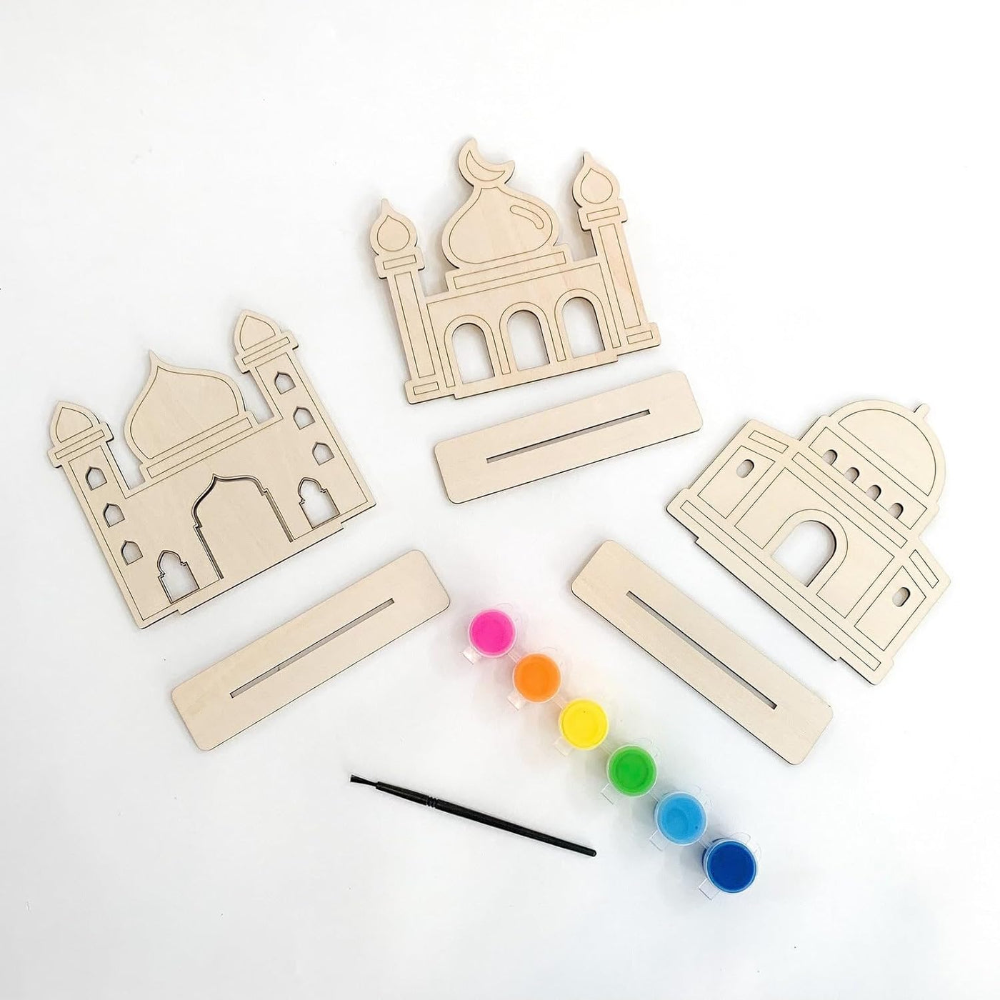 Ramadan & Eid Islamic Activity for Kids | Ramadan Wooden Decoration Mosque Wood Puzzle Craft Set with Paints | Eid & Ramadan Gift