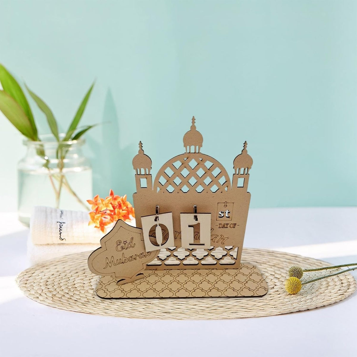 Ramadan Calendar Decoration for Tabletop | Wooden Ramadan Countdown Calendar