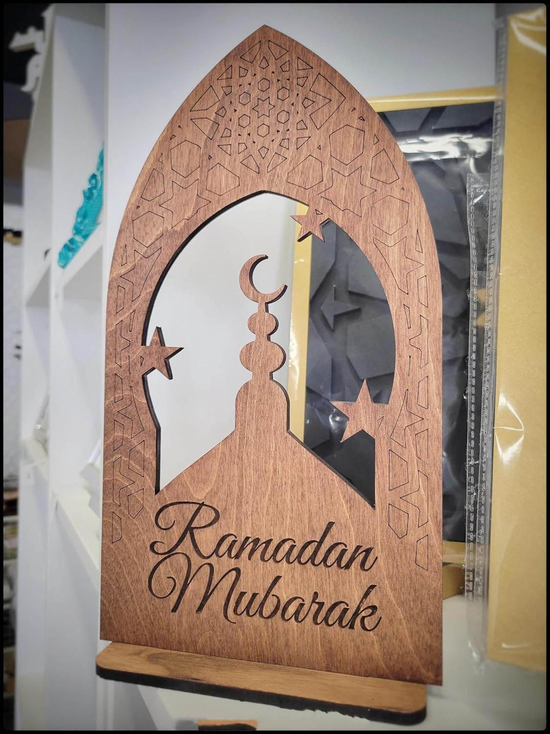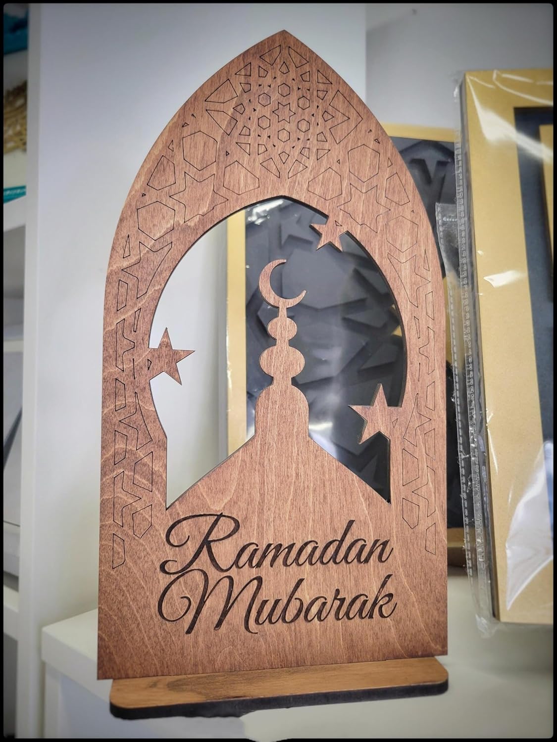 The finely engraved Pine MDF surface ensures durability, while the stable wooden base keeps it upright on shelves, mantles, desks and dining tables. Perfect for Ramadan ambience, gifting, party décor and spiritual home styling.