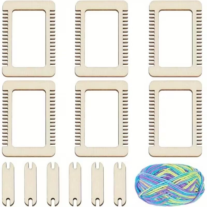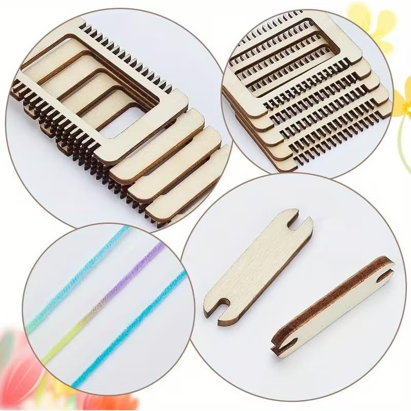 🔹 The kit includes 6 Mini Weaving Looms6 Wooden Shuttles, and 1 Craft Needle for smooth weaving. 🔹 Each loom is laser-cut for clean edges and durable performance. 🔹 Lightweight Pine MDF makes it comfortable and easy to use for long crafting sessions.