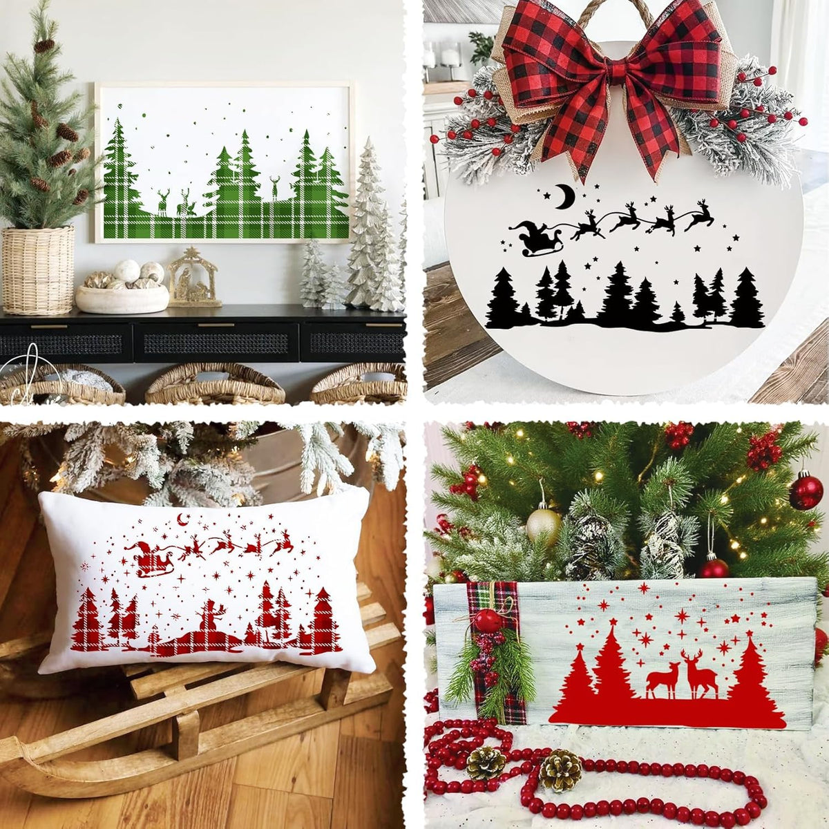 6 Pcs Christmas Window Stencils | Reusable Winter Scene, Forest Pine & Reindeer Templates